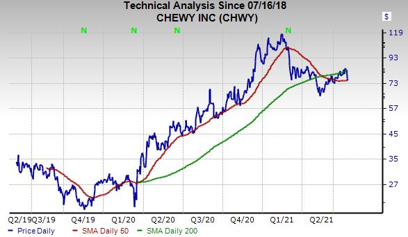 This move lagged the s&p 500's daily gain of 0.18%. Heading into today, shares of the. In the latest trading session, chewy (chwy) closed at $75.58, marking a +1.